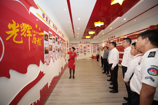 凤凰机场党委领导班子成员、各党支部书记、党员代表在讲解员的带领下集体参观了新落成的党建展示厅,现场感受了一场党建文化盛宴。参观结束后,凤凰机场党委书记许惠才带领现场所有党员重温入党誓词,铿锵有力的宣誓声响彻展厅,久久回荡,表达了对党的无限忠诚和为共产主义奋斗终身的坚定决心。