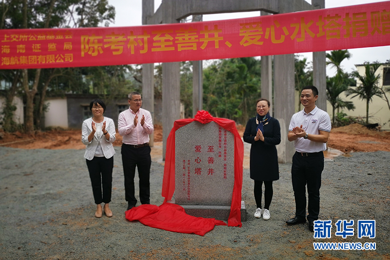 据了解,乐东县陈考村是海南证监局定点扶贫村,当地群众饮水不洁、饮水难问题突出。为解决饮水难题,海南证监局组织协调了上海证券交易所公益基金会、海航集团、海南省慈航公益基金会、大安镇人民政府共同出资启动了打井项目。项目由海航基础具体承建,从立项、选址到完工历时10个月,包含2口“至善井”、1座“爱心水塔”及水泵、变频供水系统、净水装置等配套设施。