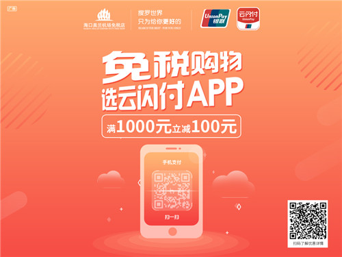 此次海口美兰机场免税店将联合中国银联海南分公司,为旅客带来便捷、高效、实惠的移动支付服务。2018年10月13日至2019年3月31日,云闪付APP用户在海口美兰机场免税店购物时使用二维码支付,可享满1000元减50元优惠;使用银联高端信用卡二维码支付,可享满1000元减100元优惠,且以上活动可与店内其它促销活动同享。