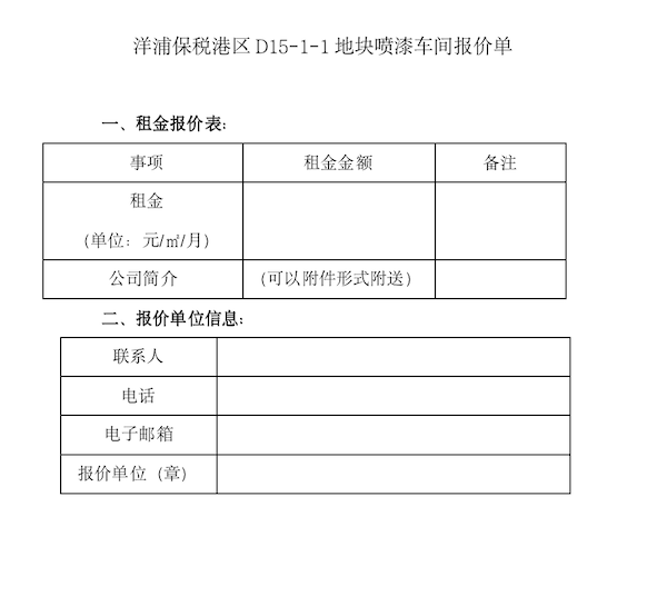 为提升洋浦保税港区厂房利用效率,现对洋浦保税港区D15-1-1地块喷漆车间进行公开招租,诚邀有意向租赁的客户积极参与承租报价。现公告如下: