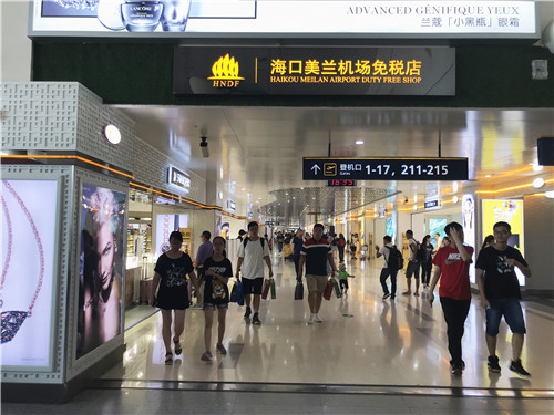 伴随暑期到来,海口美兰机场迎来家庭出游客流小高峰,巨大的客流量带旺旅游市场,海口美兰机场免税店内购物旅客熙熙攘攘。