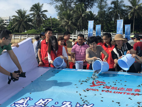 6月8日是世界海洋日,海航志愿者协会在海口市西秀公园海滩举行“感恩海洋,大爱海南”海洋生物增殖放流主题公益活动。本次活动根据增殖放流地的海域特点,选择了紫红笛鲷、红鳍笛鲷、金鲳鱼作为本次活动的放流对象。