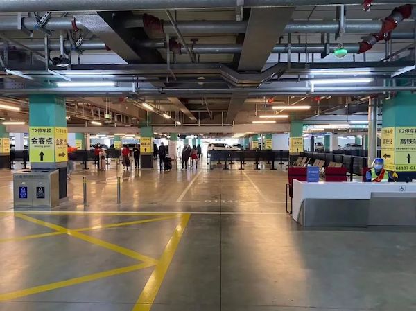 T2停车楼整体由A、B、C、D四个子停车楼及地下车库组成,配备无障碍车位、24小时视频监控、车辆自动识别、无感支付、自助寻车、新能源充电桩、线上寻车小程序、网约车专属候车区等基础设施。为给旅客提供更好的候车环境,美兰机场在T2停车楼1层C1区域,设置停车楼问询处为过往旅客解答疑惑,指引目的地。同时,为了便于司机及乘客可以互相快速找到所在位置,特在该区域设置会客点,配套等候座椅、人员指引等服务,极大缩短司机与乘客互相寻找时间。
