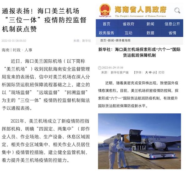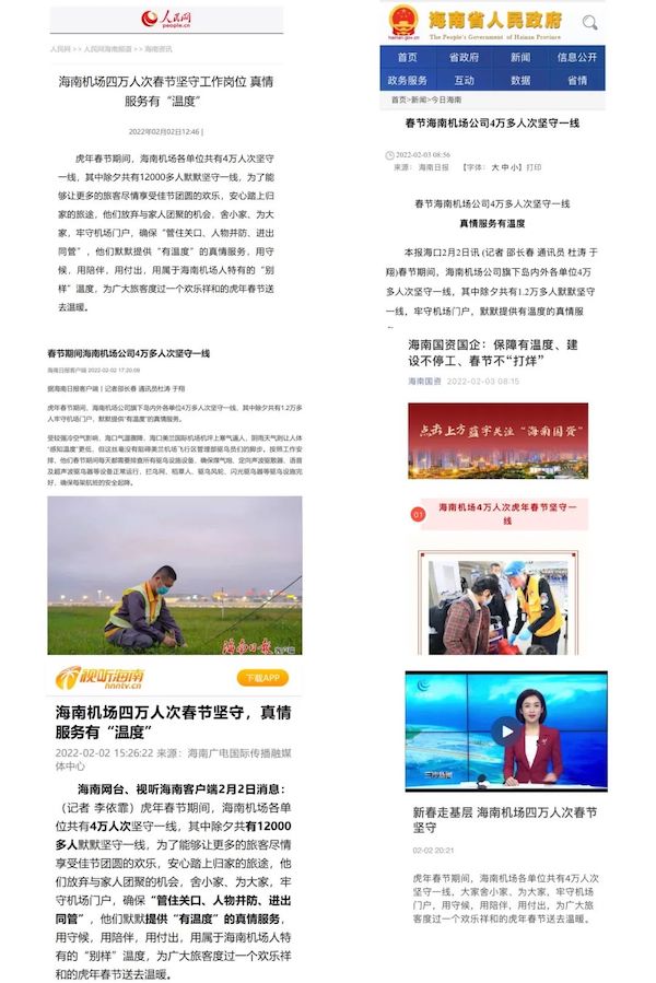 此外海南省人民政府网、海南省国资委、海南省文明办等政府及主管单位纷纷转载相关报道,为海南机场人点赞!