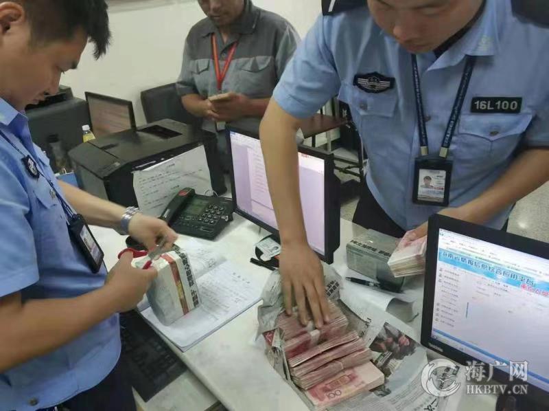 机场公安清点遗失现金