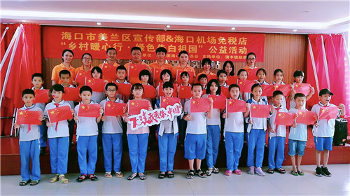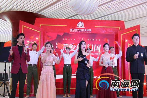 南海网、南海网客户端海口10月1日消息(南海网记者 程小丹) 为庆祝新中国成立70周年,大力弘扬社会主义核心价值观,激发群众的爱国情怀,10月1日上午10点,海口美兰机场免税店内上演了一场别开生面的快闪庆祝活动,现场演出人员用歌声和舞蹈深情表达了对祖国的热爱和祝福。