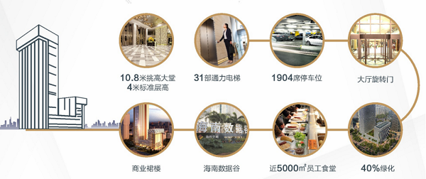 硬件设施方面,海南大厦作为目前海口5A超甲级写字楼之一,采用双层中空LOW-E玻璃、PA断桥铝合金窗框、单元式幕墙、低碳中央空调系统、新风系统,五重高精工艺,用品质解读建筑,美学与商务相融合,为企业精英提供舒适办公环境。除此之外,海南大厦配备5A智能标准系统,即OA办公自动化系统、BA楼宇自动化系统、CA通讯自动化系统、PA消防自动化系统、SA安保自动化系统,为企业提供智能办公服务。