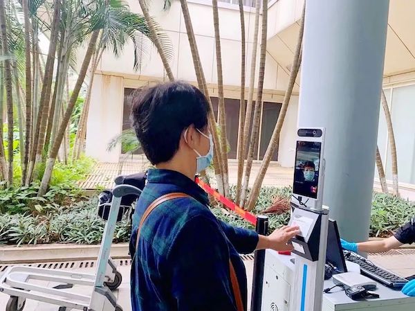 根据海南省委省政府、民航局疫情防控相关工作要求,海口美兰机场通过引入“大数据人工智能”等新技术建设美兰机场智慧防疫平台,赋能疫情防控精细化管理。于T1和T2航站楼设置9台人脸识别防疫验证设备,旅客及员工可通过刷身份证,在佩戴口罩的情况下使用人脸识别防疫验证服务,省去了手机打开健康码的步骤。