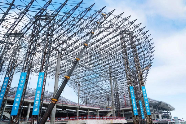 7月2日10时08分,随着最后一个提升分区的钢网架精准提升到位,宜昌三峡机场T2航站楼整体钢网架屋盖顺利完成封顶,航站楼凤凰展翅形象正式呈现,三峡机场以实际行动和工程业绩向党的百年华诞献礼!