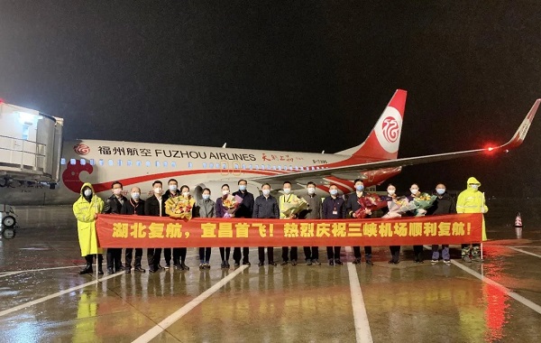 与此同时,宜昌三峡机场全体干部员工上下齐心、全力筹备复工复航,在3月29日00:06,顺利实现了“湖北复航、宜昌首飞”这个载入中国民航抗疫史册的壮举。