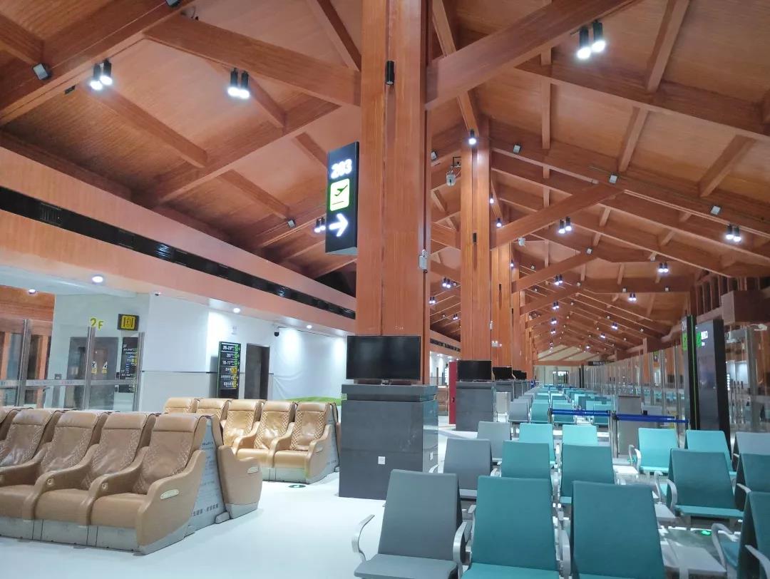 航站楼建筑面积为2万平方米、建筑高度为23米,主体结构两层,首层为到达厅,二层为出发厅,局部三至五层为运行指挥中心和机坪塔台;站坪面积为6.16万平方米,新增8个廊桥,可满足8个近机位及站坪服务车辆设施停放。