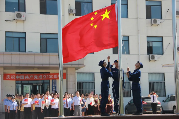 7月1日早晨,营口机场举行了庆祝建党百年升旗仪式,共迎党的百年华诞,表达营口机场全体党员干部、群众对党、对祖国的无限热爱与无限忠诚。