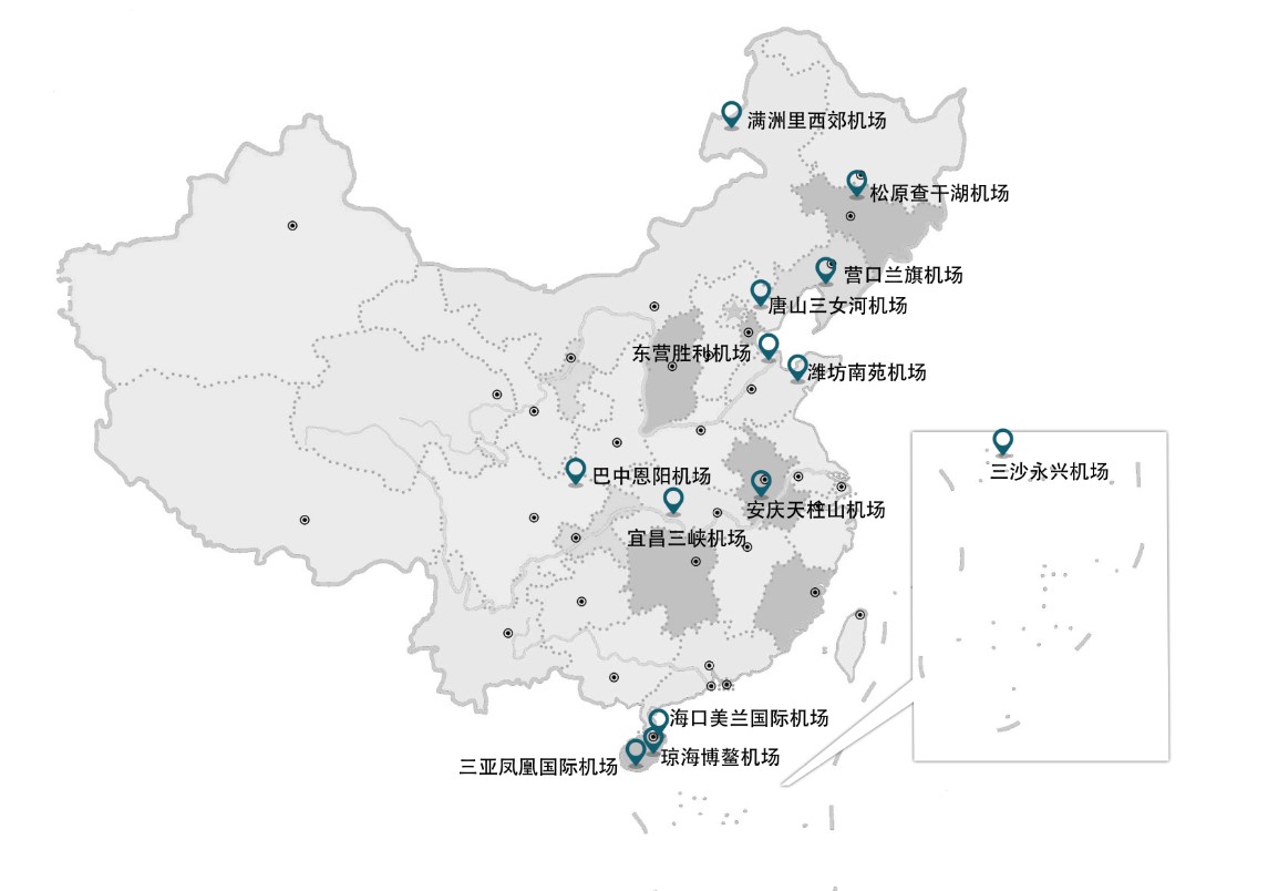 海航基础参控股机场13家,2018年共实现旅客吞吐量逾5000万人次,其中海南省内四家机场达4473万人次。海口美兰国际机场为国内首家获评“SKYTRAX五星级机场”,三亚凤凰国际机场获得ASQ三项大奖并蝉联“SKYTRAX全球最佳贵宾楼”,宜昌三峡机场、满洲里西郊机场获评“SKYTRAX四星级机场”。