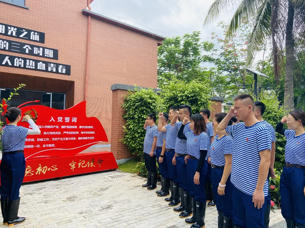盐场基地里,党建活动小组重温入党誓词,怀揣着对党的忠诚及感恩,在庄严地宣誓中,坚定永远跟党走,不忘初心、牢记使命的信念。