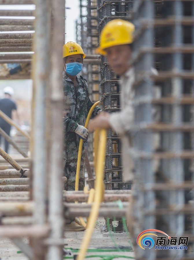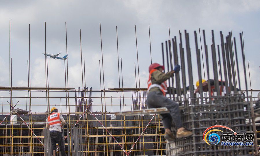 项目工地紧邻美兰国际机场,工地工人时不时抬头就能看到天空中有飞机划过。飞机飞行时传来的轰鸣声和工地上机械作业的声音交相呼应,“刚复工时看到的飞机还不多,现在几分钟就有一班飞过头顶。”周国双介绍,根据工程进度,预计在7、8、9月的施工高峰期将迎来2000人同时作业,服务项目建设,确保如期完工。
