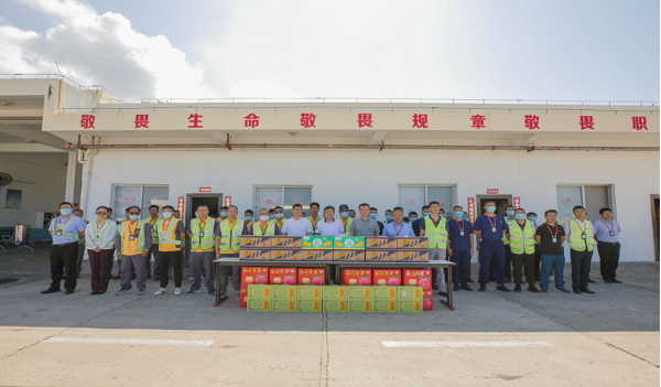2021年5月1日.上午,海航集团党委委员、凤凰机场党委书记、董事长许惠才带队前往生产一线开展“五一”慰问及“夏季送清凉”活动,给坚守岗位的干部员工送去水果及凉茶,并向他们致以节 日的问候和祝福。许惠才书记现场了解了保税物流中心(B型) 建设、节假日航班运输保障等生产工作情况,并代表经营团队向辛勤工作的劳动者们表示感谢,勉励大家继续立足本职岗位、勤勉尽责不断发扬劳模精神、工匠精神,集中精力做好安全生产及服务保障工作,为公司健康发展作出更多贡献。